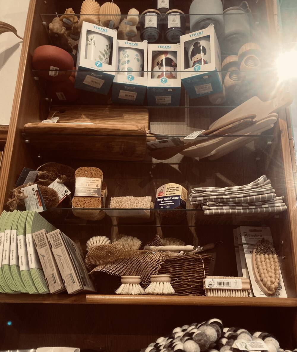 Et en plus des paniers et sacs cadeaux que nous aimons confectionner, réinventer (et disséminer!) chaque Noël, nous avons cette année essayé de trouver plus de produits pour une maison zéro déchet et sans plastique. Vous trouverez ainsi à côté des sacs à vrac filet ou tissu, des brosses en coco et des éponges en cellulose (et sans PET, même recyclé !) des planches en bois (hêtre ou olivier), spatules, bols équitables, casse-noix, râpe à fromage, porte-savon... tous en matériaux naturels et durables.
