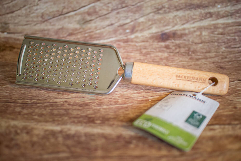 Râpe à fromage manuelle en inox avec manche en bois. Avec des grains fins pour râper facilement votre fromage préféré directement au-dessus de votre assiette. Peut servir à râper d'autres produits (zestes d'agrume...).