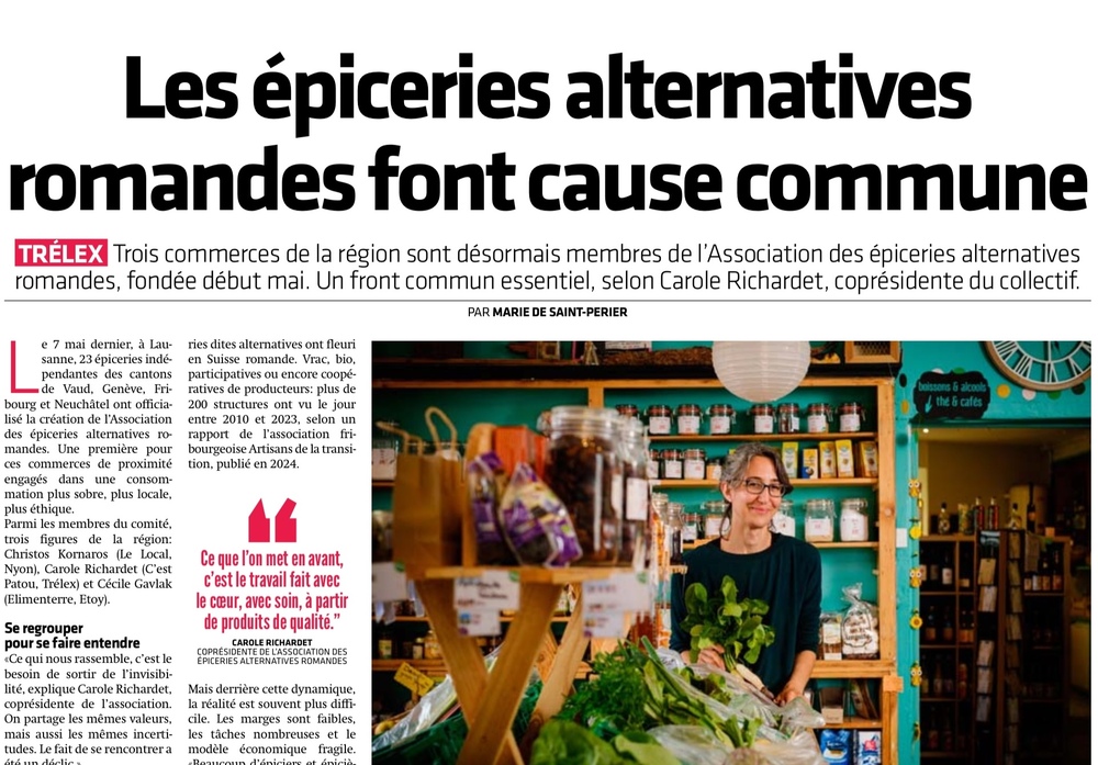Trois commerces de la région sont désormais membres de l’Association des épiceries alternatives romandes, fondée début mai, à Lausanne. Un front commun essentiel, selon Carole Richardet, coprésidente du collectif.
